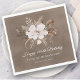 A beautiful bouquet of white flowers and neutral fall leaves decorate this 100th birthday napkin. The grey, taupe, and white foliage create an elegant and chic autumnal display that frame the white flowers perfectly. Happy 100th birthday is written below the flowers in a traditional and classic script. Two additional lines let you add the birthday celebrant's name and birthday date. All of the text can be personalised so you can create a custom napkin to meet your specific needs. This item is part of the White Floral Neutral Fall Flowers collection. It contains DIY templates you can use to create a stunning invitation suite and personalised welcome signs and party supplies such as napkins, paper cups and plates and coasters.