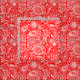 The white vintage floral paisley pattern on a red background.