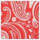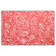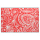 White floral paisley pattern on red fabric