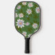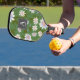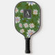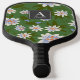 This cute pickleball paddle features a monogram and your name/text on a green background with white floral patterns. Personalise it for your needs.