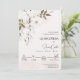 White Boho quinceañera invite with timeline. Invitación de quinceañera con secuencia de eventos