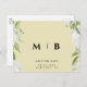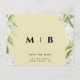 White Floral Yellow Monogram Wedding Save Date Postcard