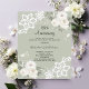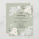 For an elegant and romantic 25th wedding anniversary. A sage green background decorated with white florals, roses and white lace. Personalise and add your names and details.