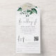 White Florals Foliage QR Code Script Wedding All In One Invitation