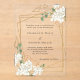 For a classic winter wedding. A clear, transparent background decorated with white flowers and a faux gold geometric frame. Personalise and add your names and details.