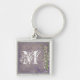 White Flower Floral Country grey rustic lace purple ribbon Monogram Initial Key Chain