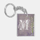 White Flower Floral Country grey rustic lace purple ribbon Monogram Initial Personalised Key Chain