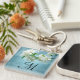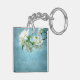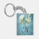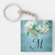 White Flower Deep Blue Sky Floral Country Monogram Initial Personalised Key Chain