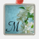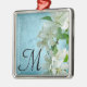 White Flower Deep Blue Sky Floral Country Monogram Initial Christmas Ornament Personalised