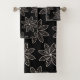 White Flower Pattern on Black Bath Towel Set