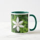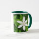 Customisable Ringer mug with white flower photograph and inspirational verse.