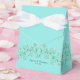 Elegant vines of white flowers form a heart with Thank You on blue tent box. Customise bottom text for your Bridal Shower, Wedding or Rehearsal dinner.