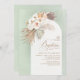 Pampas grass and botanical white flowers foliage elegant boho baptism invitations