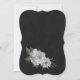 Unique table number seating chart card featuring romantic white flowers and green leaves on black background.