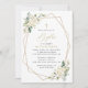 Invite friends and family in style and set the tone for your special day with this elegant baptism invitation. Design features white watercolor flowers, greenery and gold frame on white background.