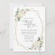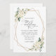 Invite friends and family in style and set the tone for your special day with this charming wedding invitation. Design features white watercolor flowers, greenery and gold frame on white background.
