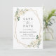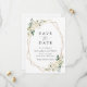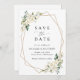 Invite friends and family in style and set the tone for your special day with this charming save the date card. Design features white watercolor flowers, greenery and gold frame on white background.
