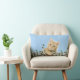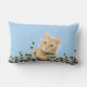 White Flowers & Ginger Tabby Cat on Light Blue Lumbar Cushion