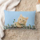 White Flowers & Ginger Tabby Cat on Light Blue Lumbar Pillow.