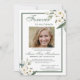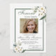 This invitation features an elegant white flowers greenery and frame with the departed loved one's photo in the centre. Just personalise the invitation and replace the photo of your loved one and information regarding the funeral/memorial service. You can customise the invitation to any way you would like to remember and honour the memory of your loved one. Please note: "Forever in our hearts", the watercolor white flowers greenery with frame and other graphic elements and artwork cannot be edited, changed, deleted, or moved. They are fixed.