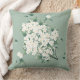 White Flowers on Green Chinoiserie Clouds Pattern Cushion
