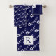White flowers pattern and monogram navy blue bath towel set