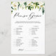 Check your purse for the items on the list. The person with the most points is the winner! | Add these fun and playful phone game card to your event. This customisable "What's in your purse?" game card features watercolor illustrations of white flowers and greenery. Personalise by adding your own details. This white floral phone game card is perfect for spring and winter bridal showers and baby showers.