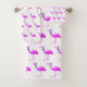 WHITE FLURO FLAMINGO PATTERN BATHROOM TOWEL SET