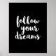 This is a beautiful art prints poster featuring follow your dreams quote in white. You can change the background colour of the poster.