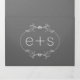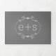 Elegant white frame and initials monogram grey tri-fold wedding invitation. It showcases your initials in a white frame with leaves on grey on the the cover. The inside panels include your text while there is a photo on the outside back and the date of the wedding on the outside flap.