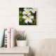 White frangipani tropical flowers square wall clock