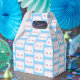 This design features a white frosting sprinkle birthday cake with a candle on favour boxes