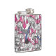 The flask itself is fine. It’s a cheap flask, obviously bought in bulk, however am prepared to overlook that. Given that it is a personalized item, I would have liked to have seen gift boxing instead of the generic packaging. Terrible printing, and/or quality. It’s a cheap, tacky vinyl. It is not cut straight and is also applied in a way that it is overhanging the bottom, causing the glue to catch on items and it will eventually roll and tear, damaging the wrap.
