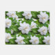 White gardenia flowers and green leaves on green Doormat