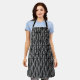 This apron has a geometric design of sort of flat-ended ovals repeating across the design in white on a field of black.