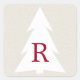 White Geometric Tree on Beige, Burgundy Monogram Square Sticker