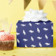 Silhouettes of white German Shepherd dogs on Navy Blue background.