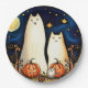 White Ghost Cats and Jack-o' Lanterns Paper Plate