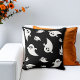 Add a playful touch of Halloween to your decor with this pillow featuring a black background patterned with simple white ghost silhouettes in different sizes. The minimal black and white style blends festive spirit with a modern look, making it a fun seasonal accent.
