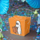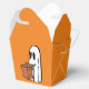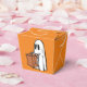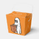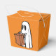 A fun way to hand out your Halloween treats with a white Ghost on an orange background "take out" box.