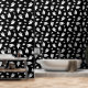 Set the scene for Halloween with this wallpaper featuring a repeating pattern of simple white ghost silhouettes in different sizes against a black background. The minimal black and white look creates a modern yet festive style that’s perfect for a spooky seasonal atmosphere.