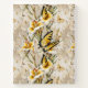 A beautiful hardcover journal to fill, at least one a year, this with a contemporary design with white gladiolus, giant yellow swallowtail butterflies, with a flurry of tiny barely there butterflies all in front of a wall surface. The name label is only lightly opaque so the design shows through but the printed title reads clearly. The back cover varies in alignment f the design for interest,