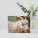 White goat licking itself postcard