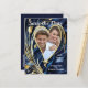 White & Gold abstract flowers on Simmery Blue Silk Announcement Postcard