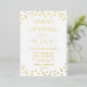 White grand opening invitation with a smattering of confetti in gold foil and text in gold foil too. Elegant white and gold grand opening invitation for your business.