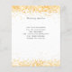 A modern, elegant wedding details/program/timeline. A white background decorated with faux gold confetti. Personalise and add your names and wedding details. Black coloured letters.
