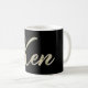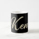 A very beautiful, elegant personalized mug / coffee mug / tea cup in white gold lettering look on black for Ken.
