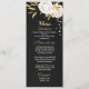 beautiful white flowers and gold leaves elegant black wedding menu.
