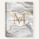 White Gold Glitter Agate Marble Monogram Script Notebook