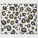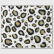 White Gold Glitter & Black Leopard Cheetah Print Wrapping Paper